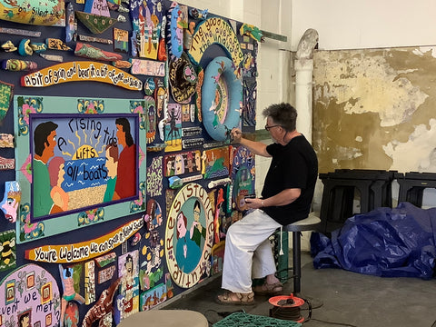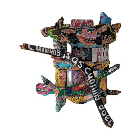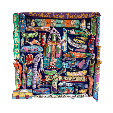Born in East London in 1961, Teddy Salad was a fishmonger until a critical illness forced a change in direction. His rehabilitation included walks along the beach and he began to collect driftwood. These pieces were configured and painted on, alongside other objects that were found on the beach.